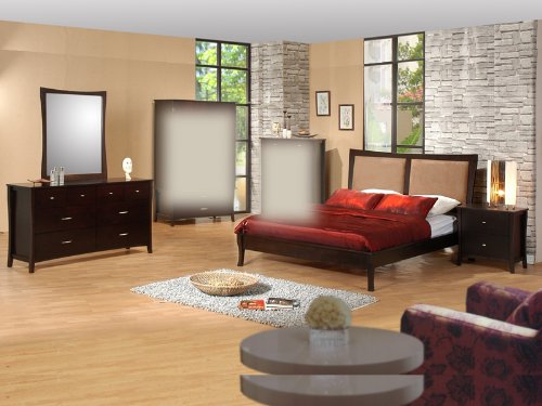 A king complete bed, dresser, mirror and nightstand are four attractive items that you can get at a time by simply bringing this contemporary platform bedroom set to your home. Its cherry finish must attract everybody?s attention and give you an impressive look. Set Includes: (1) King Complete Bed (1) Dresser (1) Mirror (1) Nightstand Finish: CherryDimensions:EK Headboard - 87 x 49 x 4 EK Footboard - 84 x 15 x 4 EK Side rails - 84 x 7 x 3 CK Headboard - 82 x 49 x 4 CK Footboard - 79 x 15 x 4 CK Side rails - 88 x 7 x 3 CK Platform Base - N/A Master Dresser - 63 x 33 x 18 Portrait Mirror - 35 x 39 x 1 Nightstand - 26 x 26 x 17 Read more...