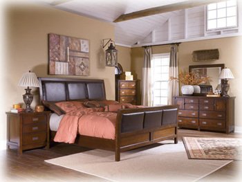 The Kendall Dresser by Signature Design by Ashley Furniture is made with select veneer and hardwood solids in burnished brown finish. It features brass colored inset hardware dovetail drawer construction and ball bearing drawer glide. Drawers have interior with color finish and felt or cedar drawer bottoms. Combined with the wood and bi-cast leather sleigh bed or bookcase bed this Kendall Bedroom Collection will fill your bedroom with splendor and luxury. Dimensions: