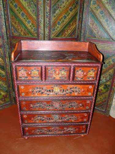 Antique India Furniture Drawer Chest Red Painted Lotus Floral Motifs Cabinet Sideboard Review