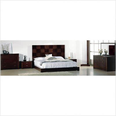 Traxler Platform Bedroom Set in Dark Walnut Size: Queen Features: -Platform bedroom set includes bed and nightstand.-Traxler collection.-Dark walnut finish.-Construction: Wood solids and veneer on medium density fiberboard.-Available in Queen and King size.-Checkered high headboard.-Slats platform system for mattress support.-Offers excellent workmanship in a contemporary package.-Assembly required.-Manufacturer provides one year warranty.-Please Note: Optional Serta Mattress and box spring ships separately from bedroom furniture, and may arrive for delivery on an earlier or later date than bedroom furniture .Specifications :