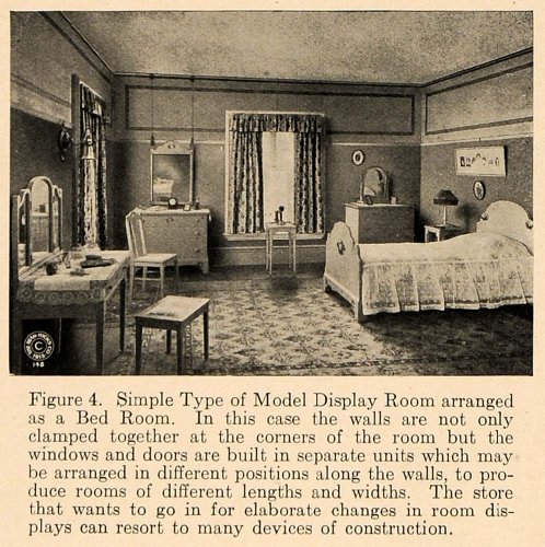 This is an original 1919 halftone print for an interior display of bed room with all the furniture and furnishings. Read more...