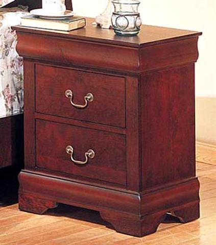 Dimensions: 24"L x 16"D x 27"H. Finish: Cherry. Material: Solid Wood. Louis Philippe Style Cherry Finish Night Stand. Item features rich classic cherry finish. Decorative Louis-Philippe style moldings. 2 spacious drawers for storage solutions. Simple Assembly Required. Read more...