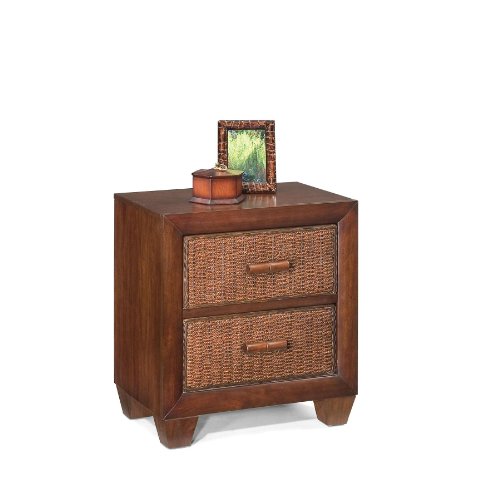 The Eco-friendly Cabana Banana Night Stand , Side Table in a rich cocoa color finish has a great design looks and good in any d?cor. This handsome night stand is the perfect by bedside or as a side talbe anywhere. Features: Eco friendly construction of 100% sustainable materials in rich Cocoa finish. Constructed of Mahogany solids and veneers with hand woven natural banana leaf drawer fronts. Two easy open drawers on metal glides. Solid Mahogany drawer pulls. Easy to assemble. Read more...
