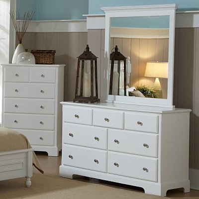 Shop for Dressers from BedroomFurnitureMart.com! Casual elegance isn't an oxymoron - it's the Freeport 7 Drawer Dresser - Soft White a clean-lined cottage-inspired piece in a breezy soft white finish. Crafted with durable select hardwoods and veneers this effortlessly chic dresser is outfitted with seven full molded-front drawers for clothing accessories and spare linens each topped with one or two cool satin nickel knobs. French dovetail joinery provides lasting strength and smooth metal glides ensure drawers operate with ease. An optional included landscape mirror features a coordinating white frame with subtly stacked crown molding. Choose the dresser and mirror or the dresser only. Coordinates with our other Freeport collection pieces. Additional Dimensions: Mirror: 39W x 2D x 35H inches Read more...