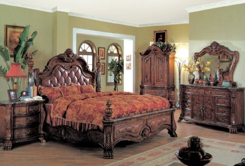 br br strongFeaturesstrong ul liBed Features liSolid Hardwoods and Wood Veneers liResin Carvings liCherryAged Black Finish liIntricate Carvings liPanel bed liMarble Inlaid Headboard liMarble Inlaid Footboard liTop Grain Leather liTufted Leather liNailhead liAsh Burl Finish liNightstand Features liSolid Hardwoods and Wood Veneers liResin Carvings liCherryAged Black Finish liIntricate Carvings liMarble Top liAsh Burl Finish liTwo Small Draw. Read more...