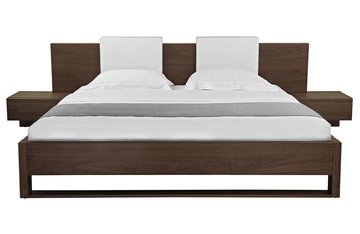 The 4 PC Monroe II Walnut Platform Bedroom Furniture Set by Modloft is perfect for creating a look of Zen in your bedroom retreat. Both sleek and stylish, the Monroe features clean lines and a smooth finish delivering remarkable tranquillity. The mattress sits snuggly atop a solid pine-slat base for stylistic durability and added comfort. Optional square backrest pillows in white, sand, black, or red leather perfectly compliment the bed. Two "floating" single drawer nightstands are included. The bed, dresser, and nightstand is also available in a Wenge color. Read more...