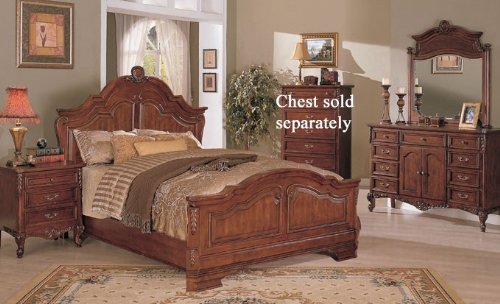 Free Shipping 4pc Queen Size Bedroom Set in Medium Brown Finish @ Amazon.com