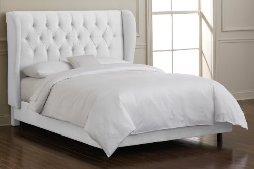 Free Shipping Skyline Furniture Waveland Wingback Queen Bed Upholstered in Velvet White @ Amazon.com